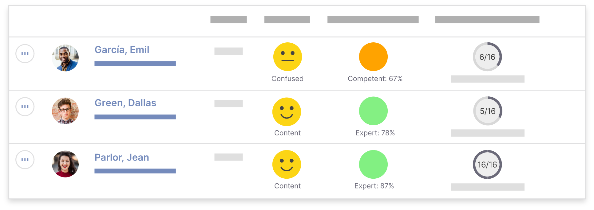 - Understand each learner’s progress in detail and identify specific areas for live coaching.